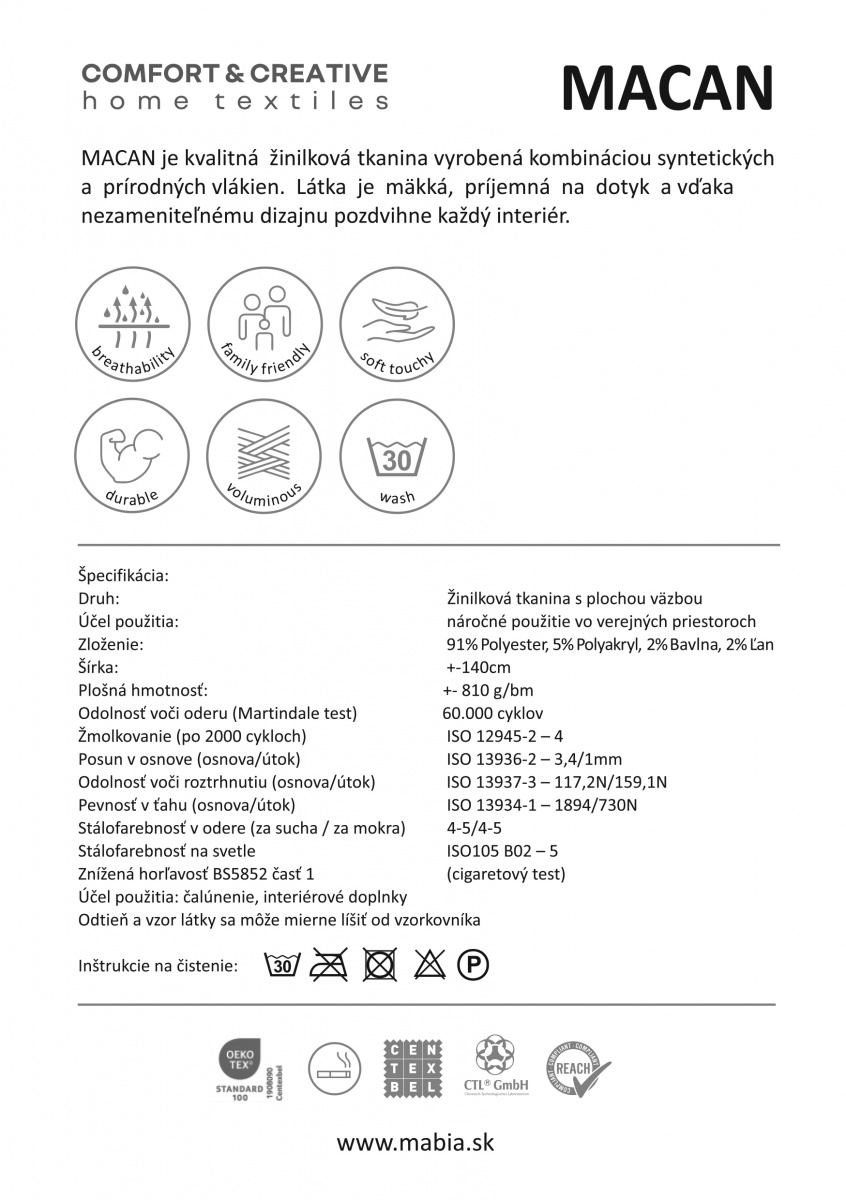 Zusammensetzung in %: 91 Polyester, 5 Polyacryl, 2 Baumwolle, 2 Leinen
